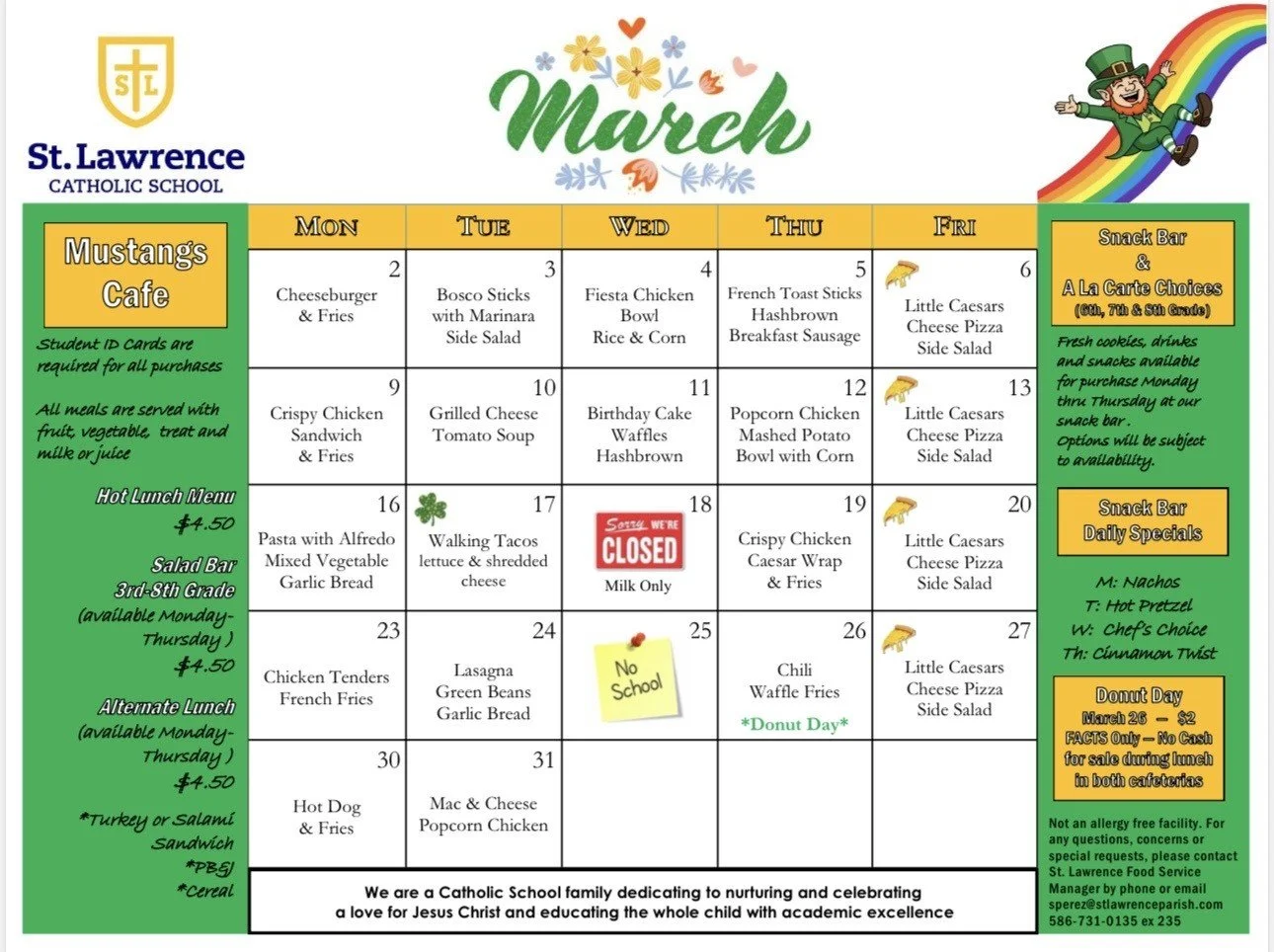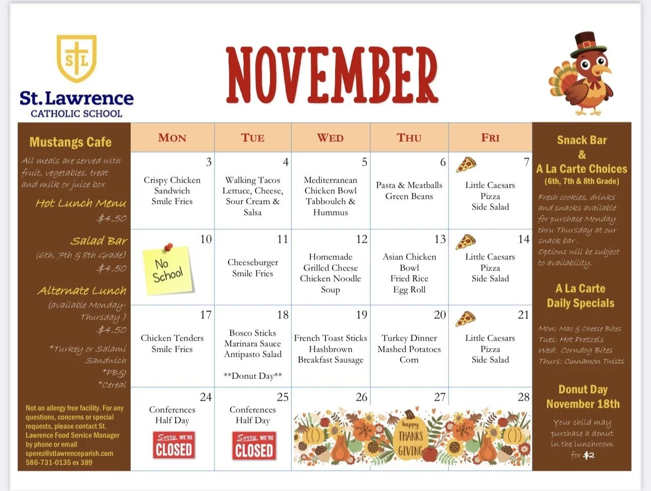 We are a Catholic School located in Utica, Michigan. We currently enroll students in preschool through grade eight. Our mission is to educate every child with academic excellence and the love for Jesus Christ. We are the Mustangs of St. Lawrence, Utica.