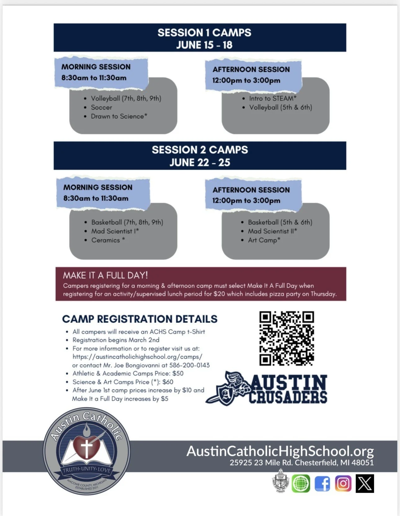 CLICK HERE FOR INFORMATION ON SACRED HEART SUMMER CAMPS