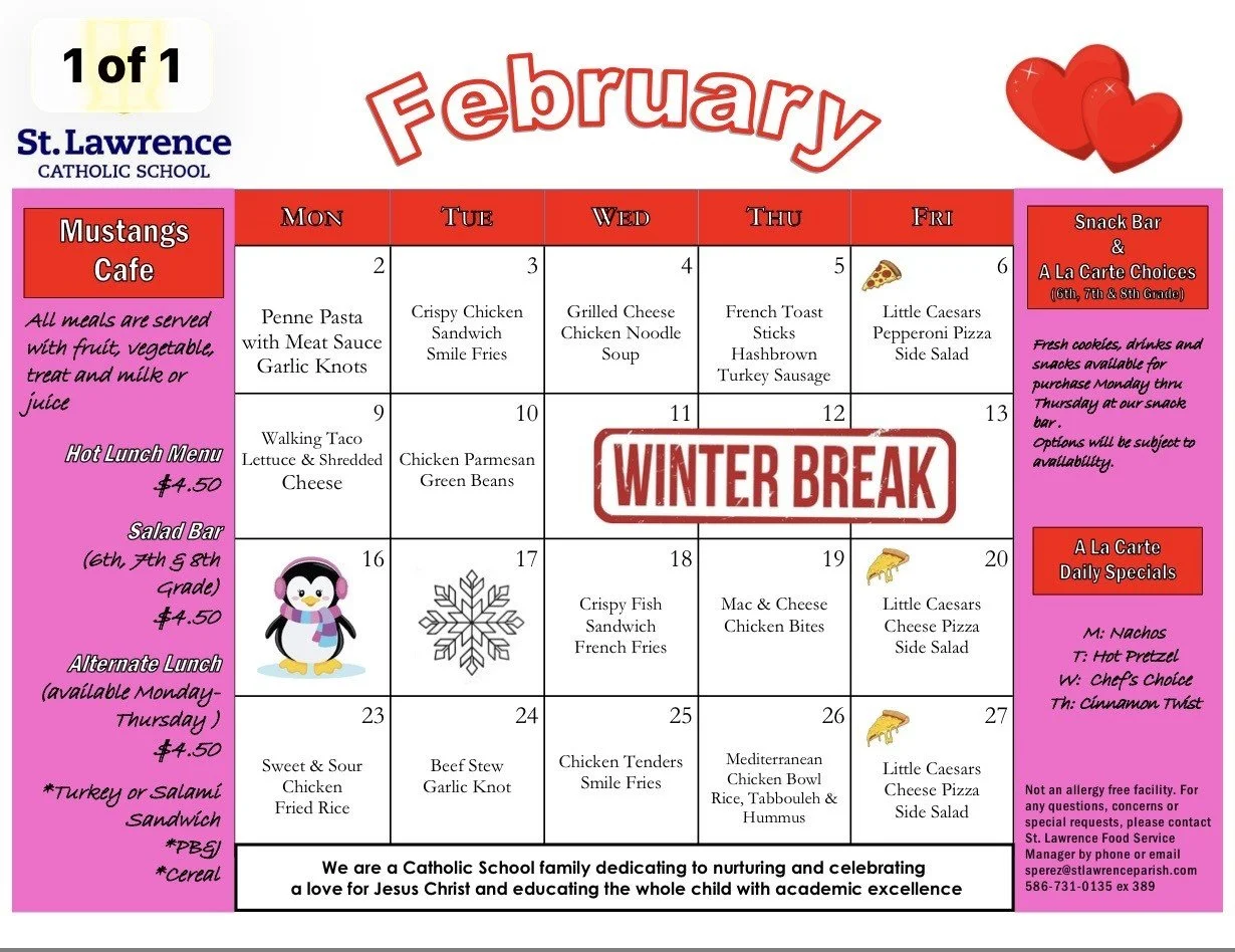 We are a Catholic School located in Utica, Michigan. We currently enroll students in preschool through grade eight. Our mission is to educate every child with academic excellence and the love for Jesus Christ. We are the Mustangs of St. Lawrence, Utica.