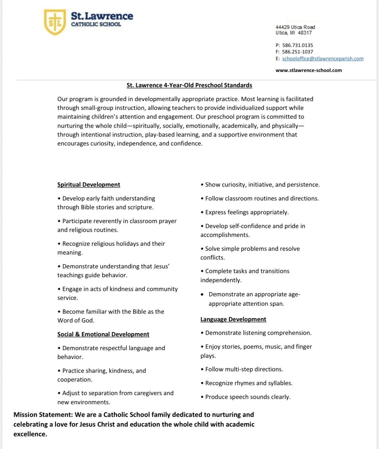 We are a Catholic School located in Utica, Michigan. We currently enroll students in preschool through grade eight. Our mission is to educate every child with academic excellence and the love for Jesus Christ. We are the Mustangs of St. Lawrence, Utica.